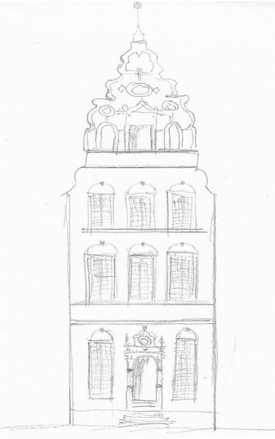 Oryginalny szczyt usunięty i zastąpiony gzymsem.